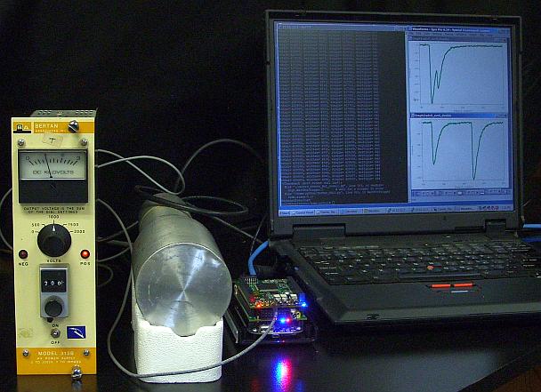In addition to the regular graphical user interface, we also provide the scripting interface which is more convenient for long running experiments like the cosmic ray measurement shown below. This experiment hunted for the rare cosmic ray decay events for three days. The progress of the data recording was shown in the left computer window which printed a status message every hundred events. The typical mu-meson decay events are shown on the right. The "power users" will appreciate the powerful scripting capabilities which are offered by the FemtoDAQ software library.